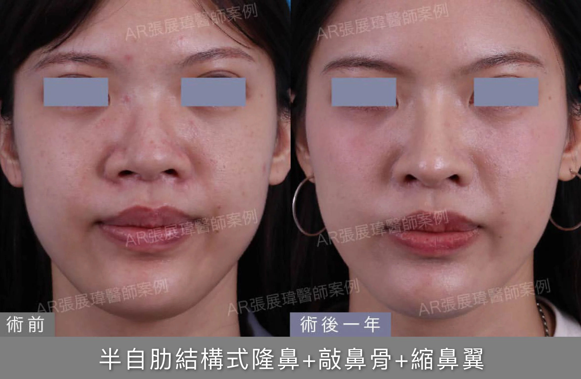 半自肋結構式隆鼻+敲鼻骨+縮鼻翼 | 術照分享