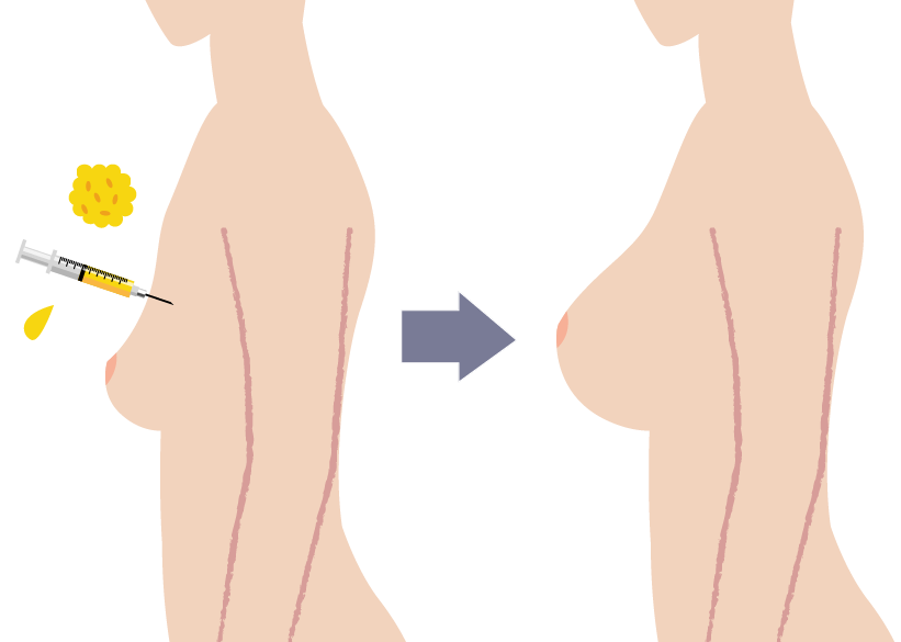 自體脂肪隆乳主要是抽取本身外觀看起來肥胖處的脂肪例如:大腿內外側、腹部、手臂或臀部等局部多餘的脂肪組織,以吸取方式取出小顆脂肪球,經過離心及純化後,再以針頭將健康的濃縮脂肪細胞注入乳房的皮下、乳腺下、胸大肌內和胸大肌下,適量地將脂肪植入各平面,便能讓脂肪細胞及早建立血液循環以獲得必要的營養,可大幅提高脂肪的存活率,並避免注入乳腺層,塑造出自然漂亮且柔軟有彈性的胸型,且無異物感。除了罩杯升級以外,亦對於局部肥胖抽取脂肪處有雕塑效果。